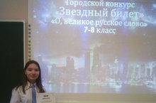 Поздравляем ученицу 8б класса Галимову Лилияну с победой в VI- городском конкурсе юных чтецов «Звездный билет» (Учитель Р.А.Усманова). Лилияна награждена Дипломом Управления образования Исполнительного комитета г.Казани за 3 место. Желаем новых высот!