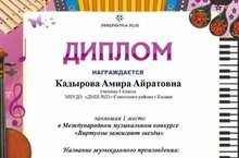 Ученица 1 класса Юлдашева Мария, класс преподавателя Шайдуллиной Лейли Ахметзакиевны, стала Дипломантом 1 степени на Всероссийской конкурсе «Зимняя нота».