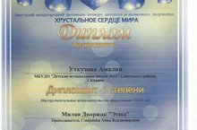 Арсланову Камилю, класс преподавателя Газизовой Г.М. с присуждением звания Лауреат II степени в Ежегодном Международном фестиваль-конкурсе «ХРУСТАЛЬНОЕ СЕРДЦЕ МИРА»