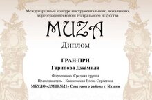 Поздравляем выпускницу Гарипову Джамилю, которая стала обладателем Гран-при на Международном конкурсе "Мuza"(г.Набережные Челны)