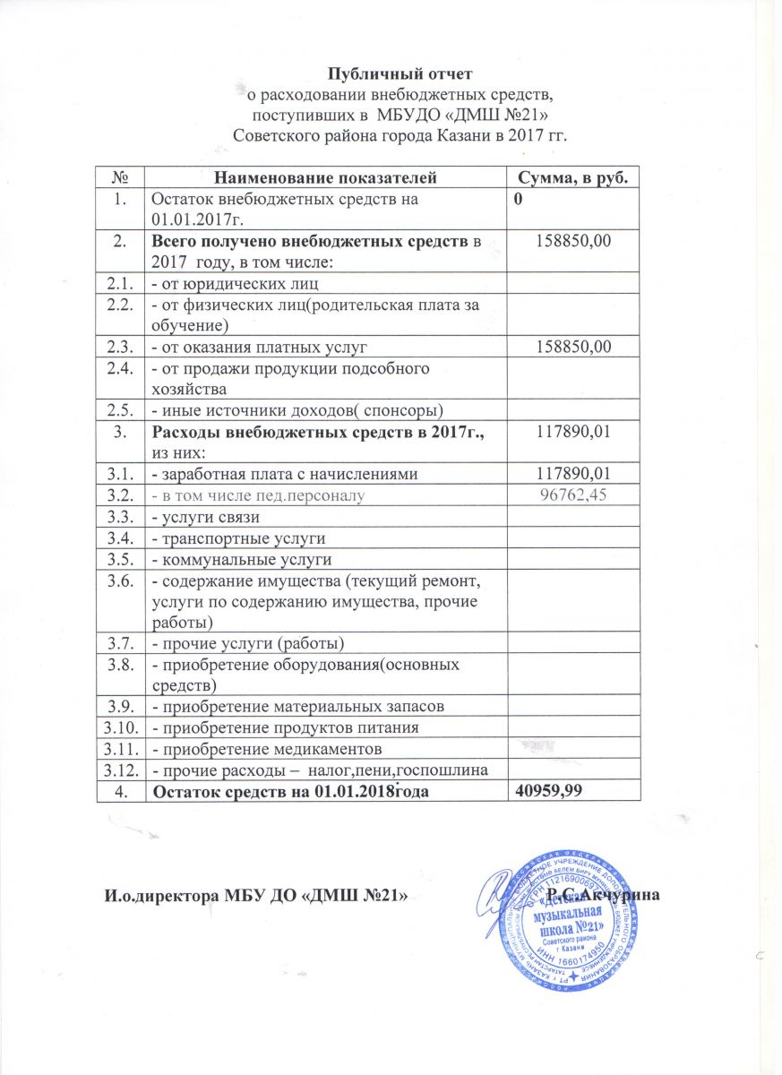 От чет о привлечении и расходовании внебюджетных средств 2017