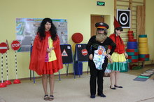В гости к детям пришли Дедушка Светофорыч, его внучка Светофорка и вредная Аварийка.