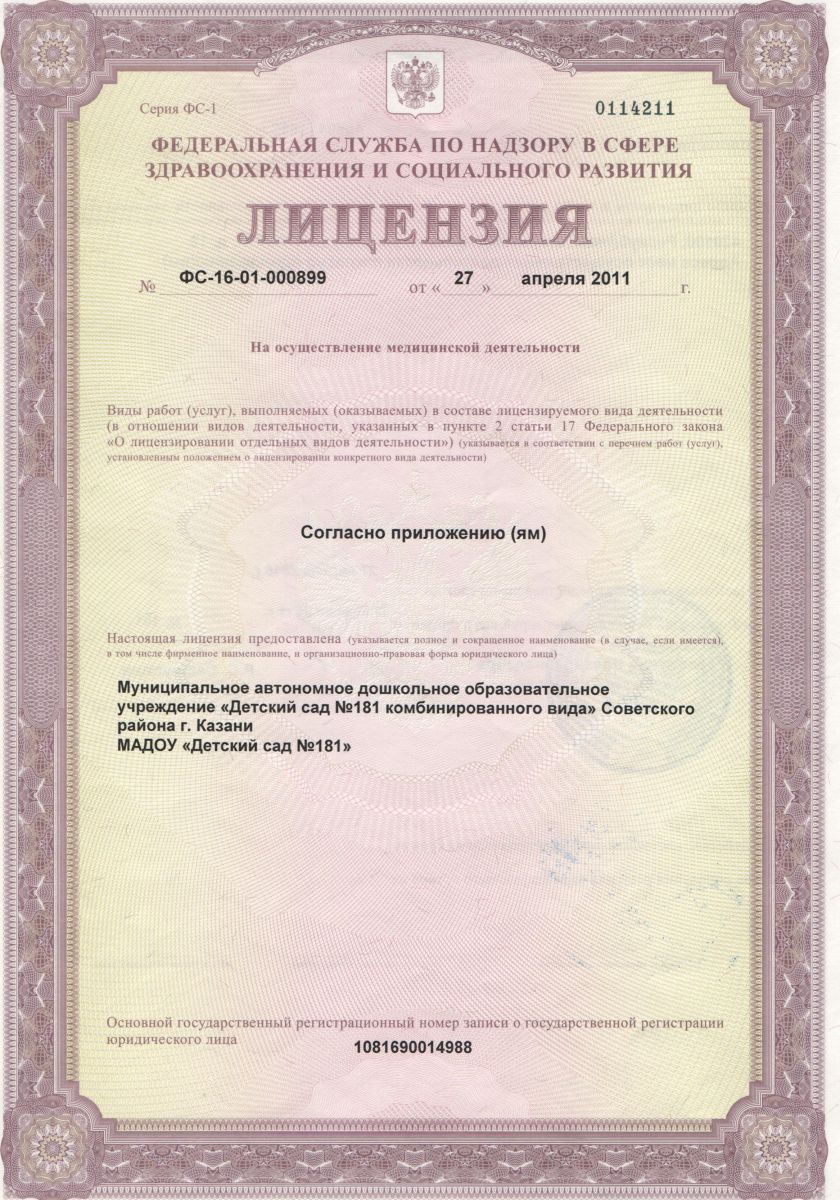 Короткое название: МАДОУ "Детский сад № 181 комбинированного вида" Советского района г. Казани