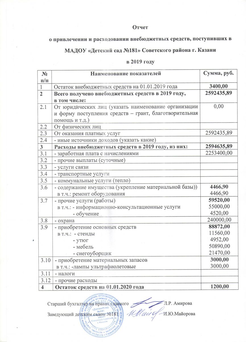 отчет о привлечении и расходовании внебюджетных средств в 2019г