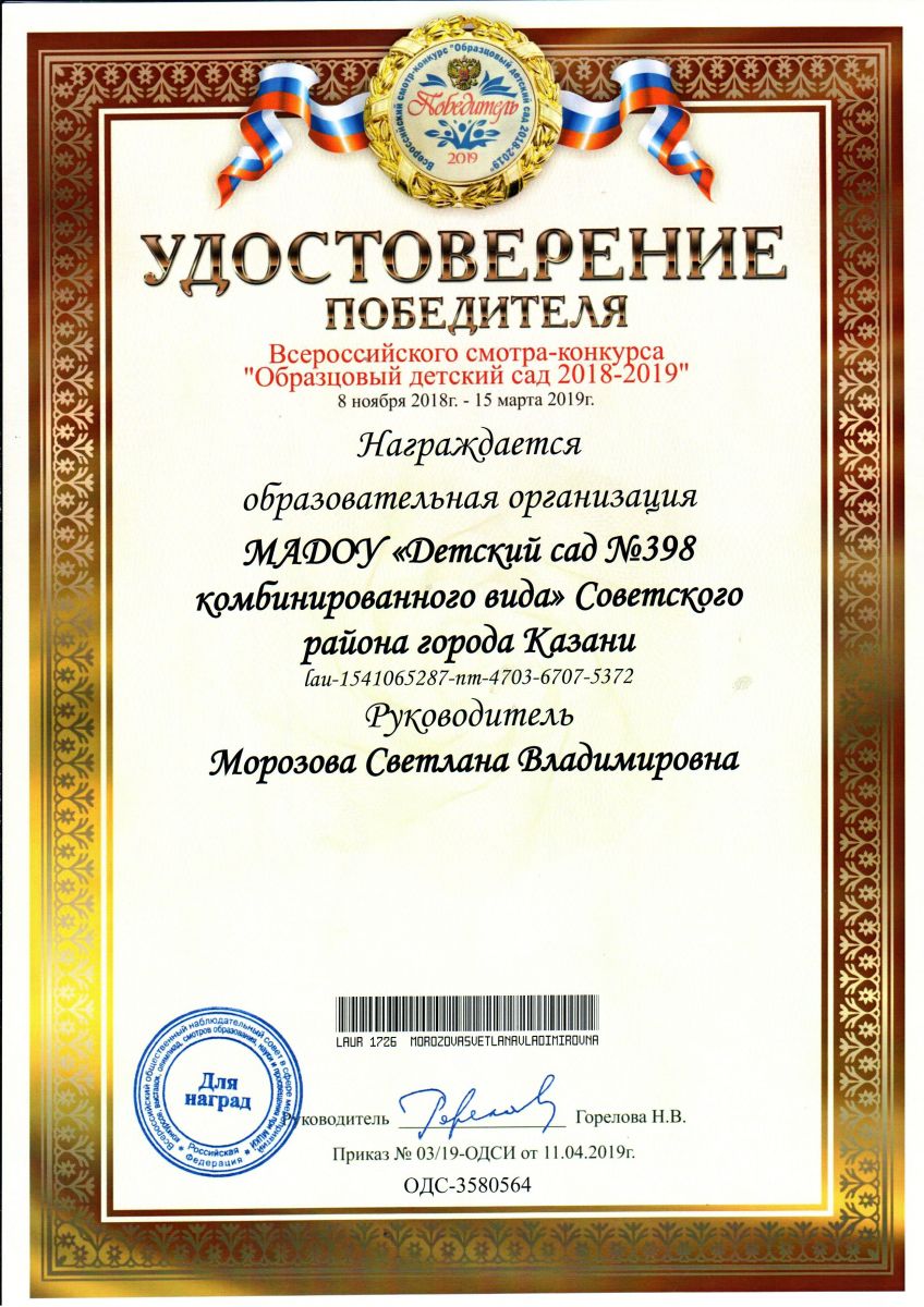 Всероссийский смотр-конкурс "Образцовый детский сад 2018-2019"