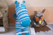 Зебра из старых носков семьи Третьякова Андрея получила на конкурсе второе место (группа "Гномики" №14)