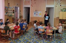 Сегодня в состоялась очередная встреча с ведущим специалистом отдела профилактики территориального управления г.Казани ГБУ "БДД". Лилия Масгутовна провела с детьми игровое мероприятие ". Ребята участвовали в викторине,повторили дорожные знаки,показали свои знания по ПДД и поcмотрели мультфильмы по ПДД.