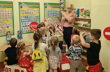 Сегодня в нашем детском саду прошёл день 'Безопасности дорожного движения'. Ребята с удовольствием вспомнили о том, как нужно себя вести на дороге и возле нее, а так же познакомились с новыми дорожными знаками и их обозначениями.