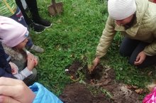 Каждая группа получила по одному саженцу. Перед посадкой ребятам рассказали о том,почему важно беречь деревья и как правильно ухаживать за ростками.