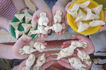 А еще исстари на Руси в этот день пекли хлебных жаворонков, чтобы они как можно быстрее принесли весну на своих крыльях. Вот и наши дети пекли сегодня жаворонков и треугольники из соленого теста, закликали весну, зазывали яное солнышко....