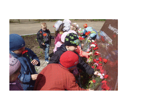 Воспитанники нашего детского сада ходили на празднование Дня Победы, возложили цветы 08.05.2013