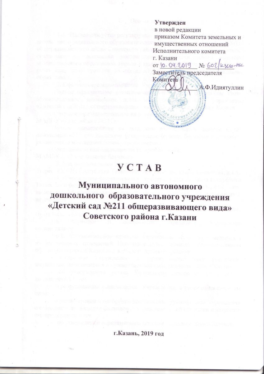 Устав МАДОУ "Детский сад №211 общеразвивающего вида" Советского района г. Казани