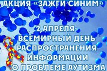 2 апреля ежегодно отмечается Всемирный день распространения информации о проблеме аутизма (World Autism Awareness Day). Он был установлен резолюцией Генеральной Ассамблеи ООН от 18 декабря 2007 года, в которой была выражена обеспокоенность высокой численностью детей, страдающих аутизмом. 2 апреля в знак солидарности с людьми с аутизмом, и их семьями, а также для привлечения внимания политиков и простых граждан к проблемам аутизма в мире ежегодно проходит акция «Зажги синим» (Light It Up Blue).В рамках данной акции в детском саду №332 родителям была предложена информация о том, как вести себя прохожим, педагогам,сотрудникам правопорядка, если они увидят истерику у чужого ребёнка, рекомендован для семейного просмотра фильм «Тэмпл Грандин». Несмотря на режим самоизоляции, дети совместно с родителями приняли активное участие в акции и поделились с нами замечательными фотографиями. К нашей акции присоединились другие детские сады Советского района - 109, 352, 230, 67, 114, 115, 298, 280