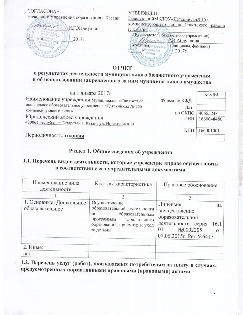 "Отчет о результатах деятельности муниципального бюджетного учреждения и об использовании закрепленного за ним муниципального имущества на 1 января 2017 г."