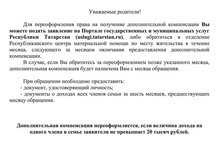 Для переоформления права на получение дополнительной компенсации Вы можете подать заявление на Портале государственных и муниципальных услуг Республики Татарстан (uslugi.tatarstan.ru), либо обратиться в отделение Республиканского центра материальной помощи по месту жительства в течение месяца, следующего за месяцем окончания предоставления дополнительной компенсации.