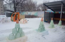 Несмотря на то, что зима в этом году бесснежная, наши воспитатели придумали новый оригинальный способ украшения участков с использованием бросового материала. Для этой цели они используют цветные мусорные пакеты, наполненные снегом.