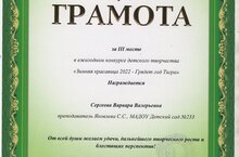 Поздравляем Сергееву Варвару, воспитанницу средней группы 3 с победой в конкурсе детского творчества организованный @kazanzoo1806 . Желаем удачи, дальнейшего творческого роста и блестящих перспективы.