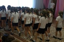 Сегодня , в нашем детском саду прошел смотр строя и песни среди старших и подготовительных групп, где дети показали свои способности посостязалисть в эстафетах. Все команды выступили одинаково хорошо! Победила дружба.