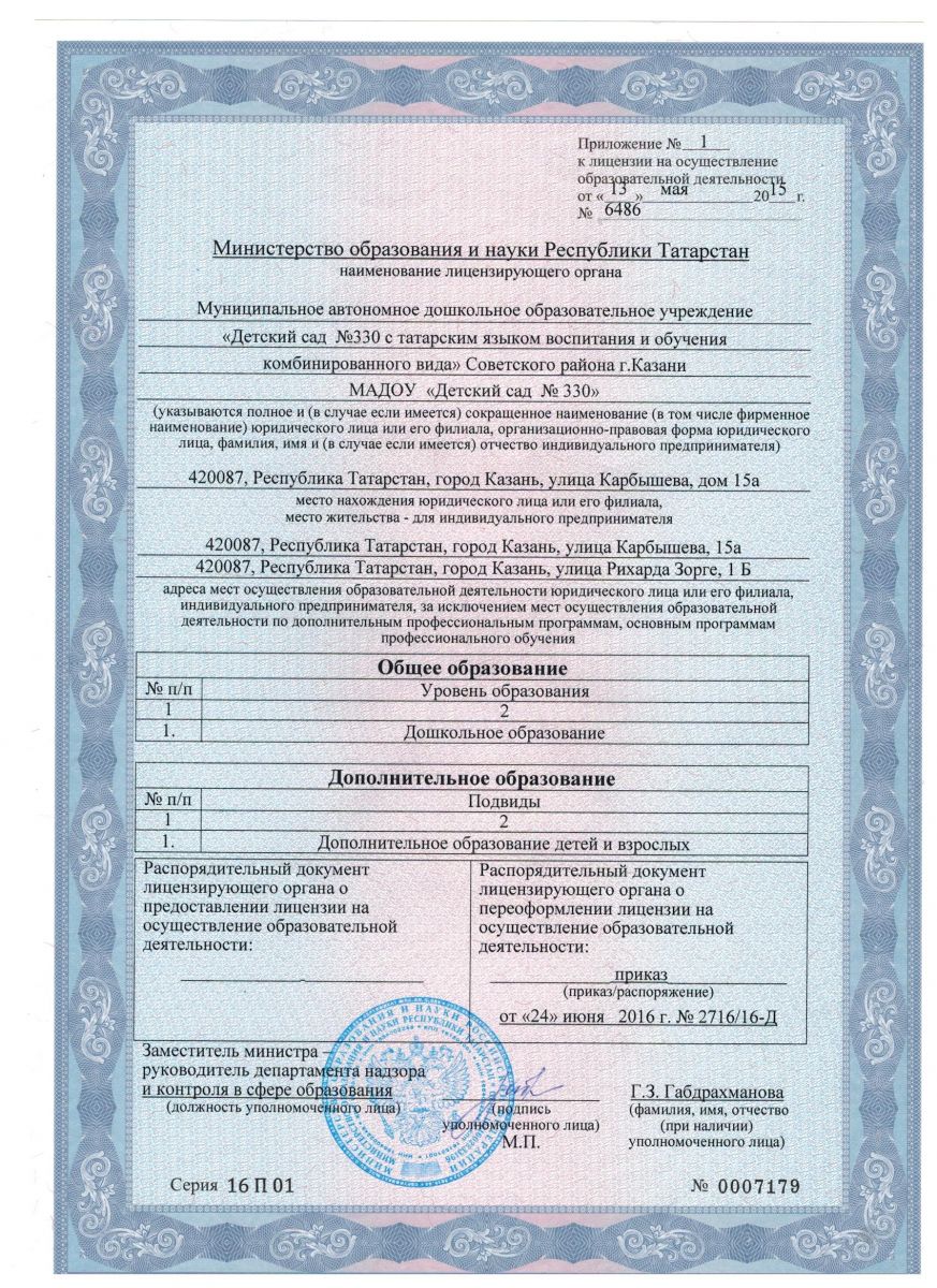 МАДОУ "Детский сад № 330 с татарским языком воспитания и обучения комбинированного вида" Советского района г.Казани