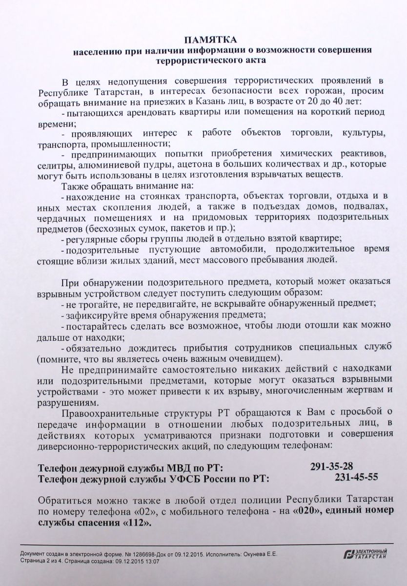 Памятка по антитеррору