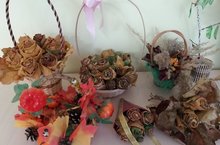 В детском саду прошли различные конкурсы. В младшей группе- конкурс рисунков, в средней-конкурс поделок "Дары осени", в подготовительной -"Букет из листьев", в старшей-подготовительной, 5 и 6 логопедических группах "Осенняя картинка из сухих листьев".