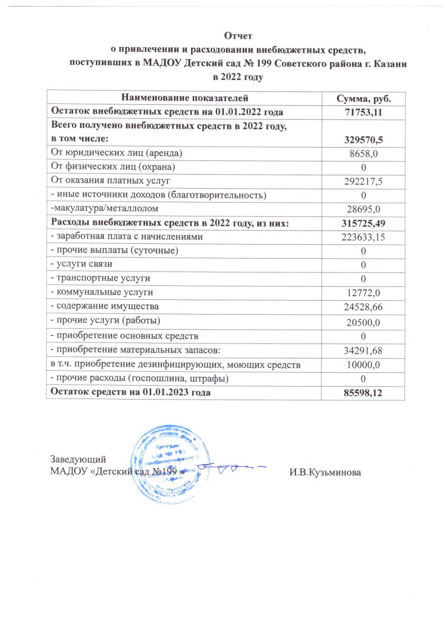 Отчет о привлечении и расходовании внебюджетных средств ДОУ за 2022 год
