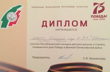 Сегодня на профсоюзном собрании РОО Советского района г. Казани нашему детскому саду был вручен Диплом от Федерации Профсоюзов Республики Татарстан за участие в Республиканском конкурсе детского рисунка и плаката, посвященный Дню Победы в Великой Отечественной войне.