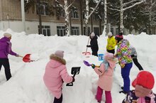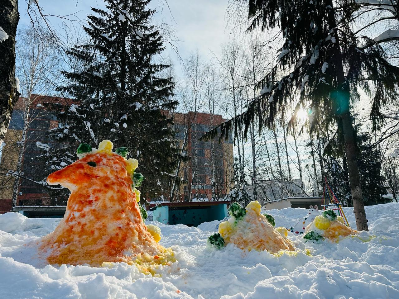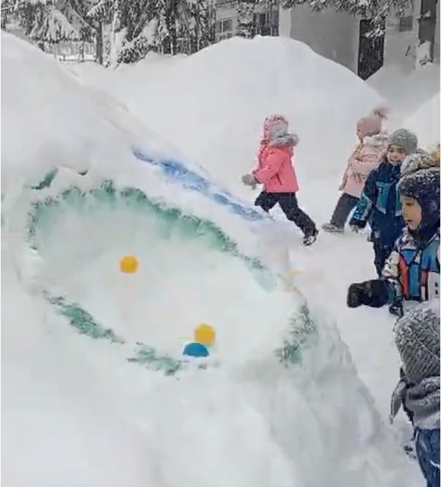 Для создания развивающей среды на участках детского сада силами воспитателей и родителей были организованы постройки из снега для физического развития детей.