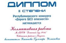 с 15 января по 28 февраля 2018 года проводился Республиканский конкурс с целью профилактики безопасного поведения на дорогах, воспитания законопослушных участников дорожного движения, пропаганды здорового образа жизни. Из нашего детского сада в этом конкурсе приняла участие воспитатель первой категории Хасанова Гульнара Усмановна в номинации «Настольная игра по правилам дорожного движения», возрастная категория 3-5 лет, «Игра-ходилка» .В этой номинации приняли участие 263 работ, где наш педагог - воспитательница средней группы Хасанова Гульнара Усмановна заняла почетное 2место, среди педагогов ДОО . ПОЗДРАВЛЯЕМ!!!