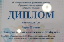 14.12.2019 года в Доме культуры им.Ленина прошел IV Республиканский фестиваль-конкурс "Прорыв" в рамках проекта "В ритме жизни", воспитанники детского сада приняли а степени в номинации: "Народно-стилизованный танец. Малые формы" Первые шаги (до 6 лет).