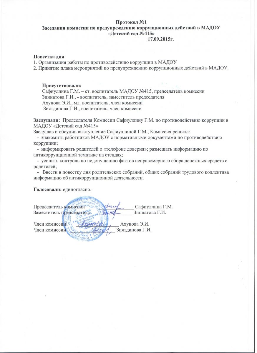 Приказ о создании комиссии по противодействию коррупции