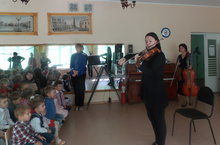 Сегодня в детском саду прошел ставший традиционным "День знаний". Нынче он проходил под девизом "Я-талантлив". В гостях были педагоги из ДМШ № 9. Одна из них, выпускница нашего детского сада. Педагоги рассказали детям сказку про Струнное королевство, сыграли на инструментах и попели с детьми песни.