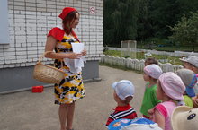 Красная шапочка проводит с ребятами разговор по антитеррористической безопасности