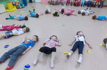 Сегодня после сна дети вторых младших групп собрались в спортзале, где для них воспитатель Гаврильчева В.А. провела игру. Дети ходили в гости в лес, где превращались в зайчиков, будили медведя, убегали от волка.