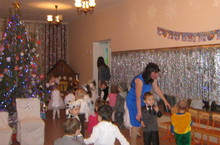 Во всех группах прошлим новогодние елки: всего их было 11. Даже к самым маленьким приходил Дед Мороз, правда он был кукольный чтобы не напугать малышей.