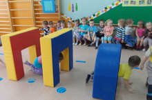 Сегодня Л.М. Хуртина пригласила в гости к ребятам второй младшей группы Колобка. Вместе с ним дети бегали, прыгали через ручеек, ползали, прыгали как зайчики. А в подарок получили свежевыпеченные колобки. Всем очень все понравилось.