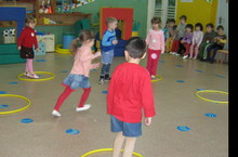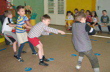 На фотографии вторая младшая группа №9. Игра с мамами "Воротца".