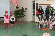 С 22 по 28 октября во всех группах детского сада прошли осенние праздники. В гости к детям пришла осень и принесла осенние гостинцы. А в старших группах праздник был не только вкусный и приятный, но познавательный: ребята рассказали друг другу историю возникновения кукол. Дети узнали, что такое деревянная кукла, матрешка, лоскутная, бумажная, фарфоровая кукла, марионетка, в рост человек, Би-ба-бо, Барби и др. Эти куклы сами пришли в гости к детям, рассказали о себе, спели и станцевали. А в конце дети все-все станцевали танец "Кукляндия".
