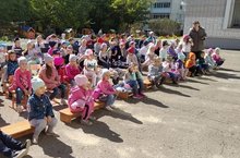 Сегодня прошел праздник "День знаний". Сначала воспитанники старших и подготовительных групп играли в игру паровозик "Умники", затем состоялся спектакль прямо во дворе детского сада.