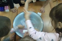 Сегодня воспитатель Сайфутдинова Л.Р. провела в группе у самых маленьких занятие под названием "Маленькие фокусники (Изучаем свойства воды)