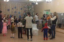 Сегодня состоялась новогодний праздник для детей сотрудников. Пришли 20 детишек сотрудников от 1 года до 11 летнего возраста. Вот такая разновозрастная елка. Сценарий назывался "Как Баба Яга Снегурочку украла".