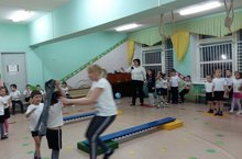 Спортивное развлечение в средних группах подготовила и провела воспитатель Ахмадуллина Л.Г. Дети собирали "витамины" для подопечных Доктора Айболита.