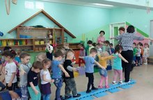 В гости к детям вторых младших групп пришел клоун Клепа и поиграл с ними в разные спортивне игры.
