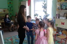 Спортивное развлечение для вторых младших групп провела старший воспитатель Гайнутдинова Д.Ф. Дети пробирались к медведю через леса, снега и сугробы, кочки и лужи, чтобы разбудить его и сообщить о приходе весны.