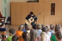 Сегодня педагоги музыкальной школы пришли к нам с концертом. Они познакомили детей ДОУ в музыкальными инструментами: гитарой, фортепиано, скрипкой, флейтой.
