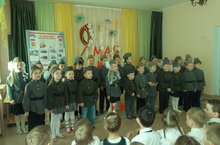 Сегодня в детский сад пришли родители, бабушки и дедушки. Мы им показали концер, посвященный 71 ггодовщине со дня Победы. Традиционно песню "День Победы" пели всем залом.