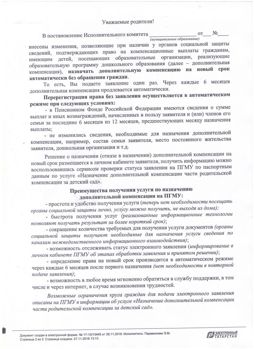 Постановление ПИК "О компенсации родителям на 2021 год"