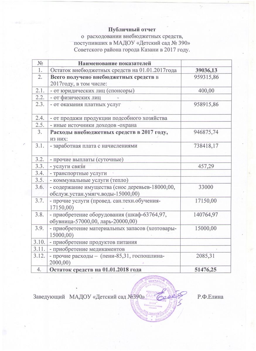 Отчет о привлечении и расходовании внебюджетных средств за 2017 год