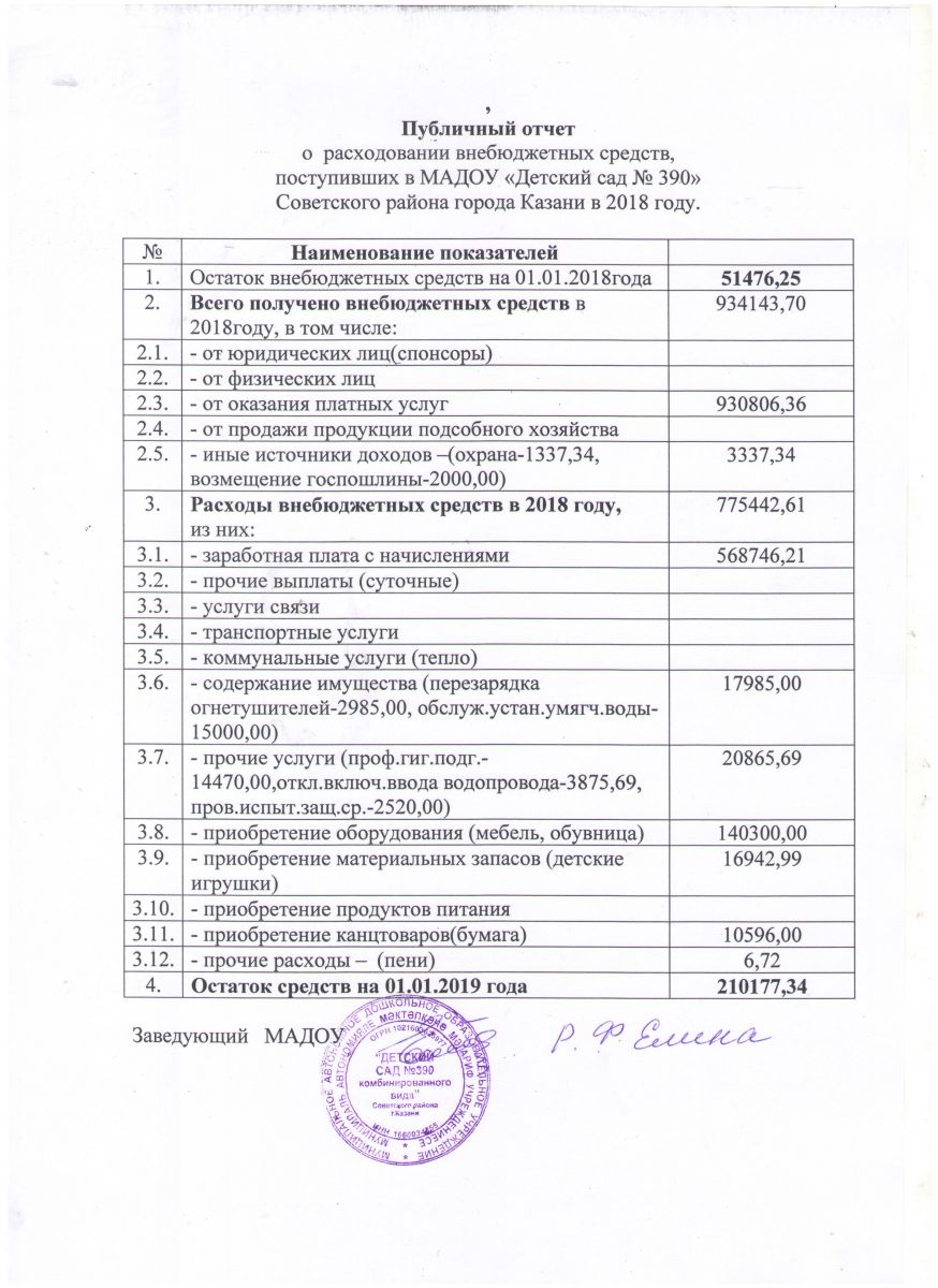 Отчет о привлечении и расходовании внебюджетных средств за 2018 год