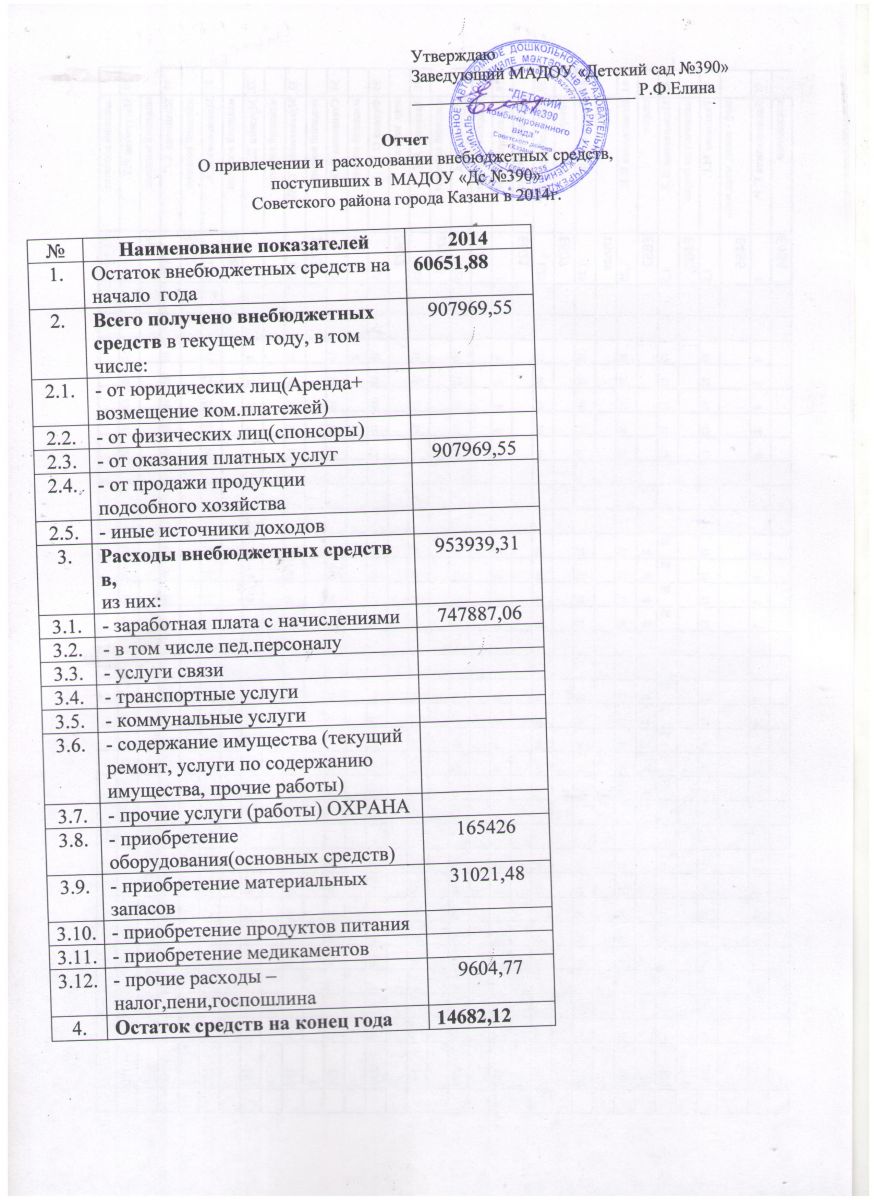 Отчет о привлечении и расходовании внебюджетных средств за 2014 год